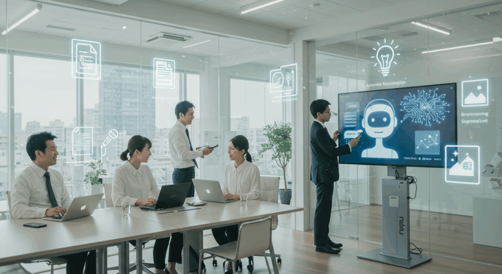 AIは、専門家だけのものではなく、今すぐ業務に活用できる実用的なツールです。たとえば、議事録の自動生成や提案書の下書き、アイデア出しの支援、画像素材の作成など、すでに多くの現場で使われています。